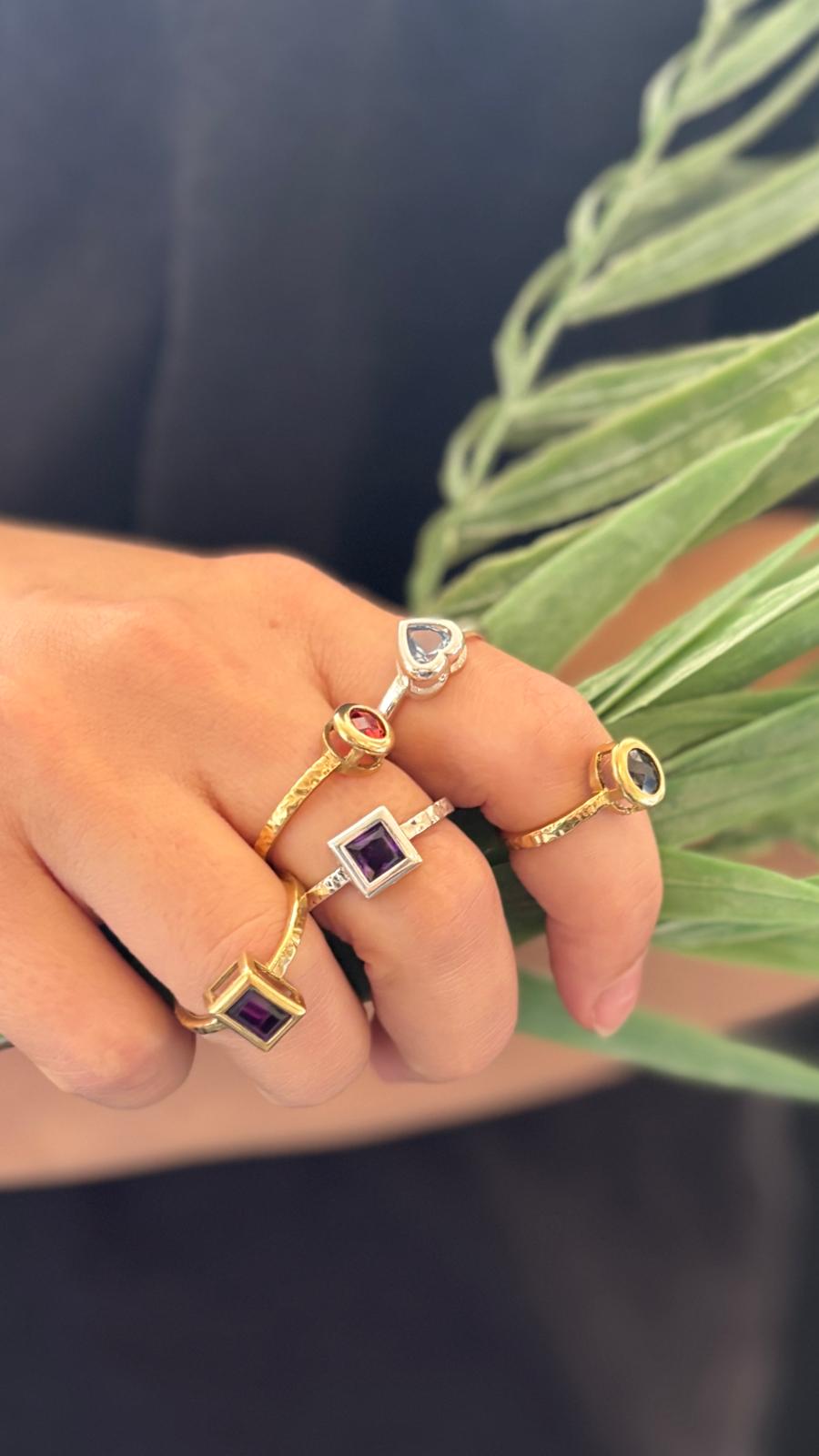 指輪 リング 空枠 ラウンド 丸 石枠 真鍮 ハンマード ベゼル 6mm(ブラス・シルバーカラー)50個です。