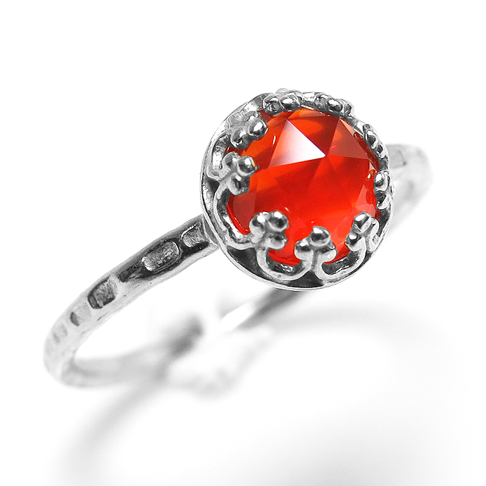 カーネリアンリング 指輪 天然石 ローズカット<7月誕生石>ハンマード ラウンド6mm 真鍮ブラス・シルバーカラー/1個です。