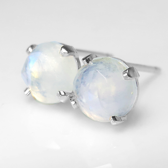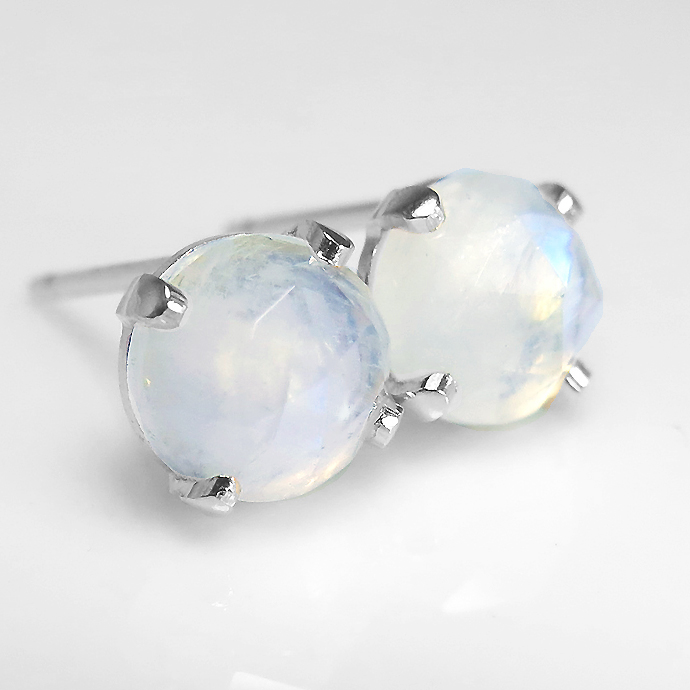 レインボームーンストーンピアス シルバー 天然石 <6月誕生石> ラウンド6mm カボションローズカットSV925 1ペアです。