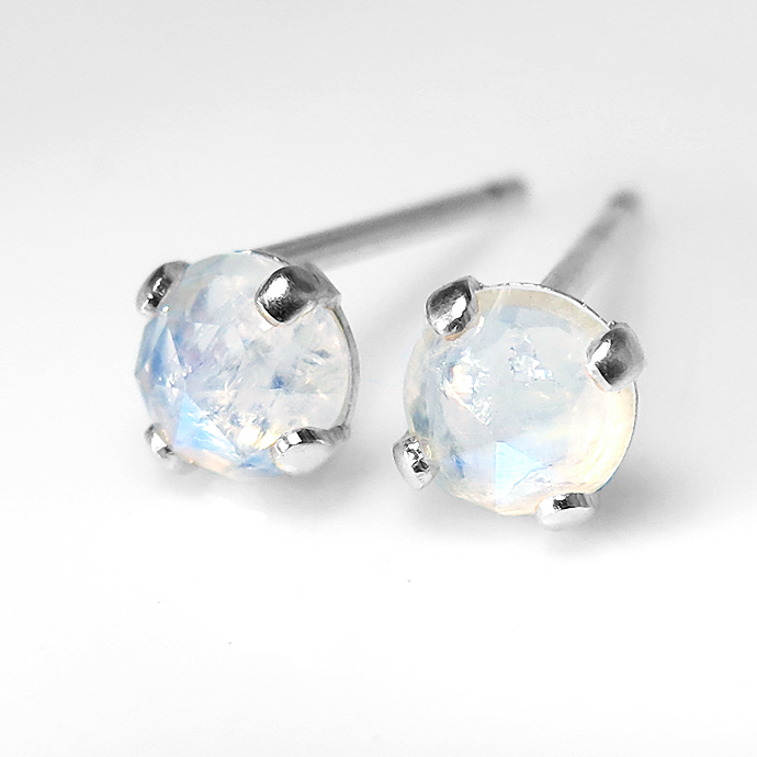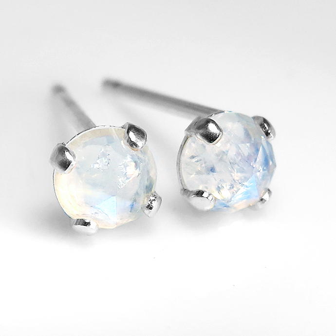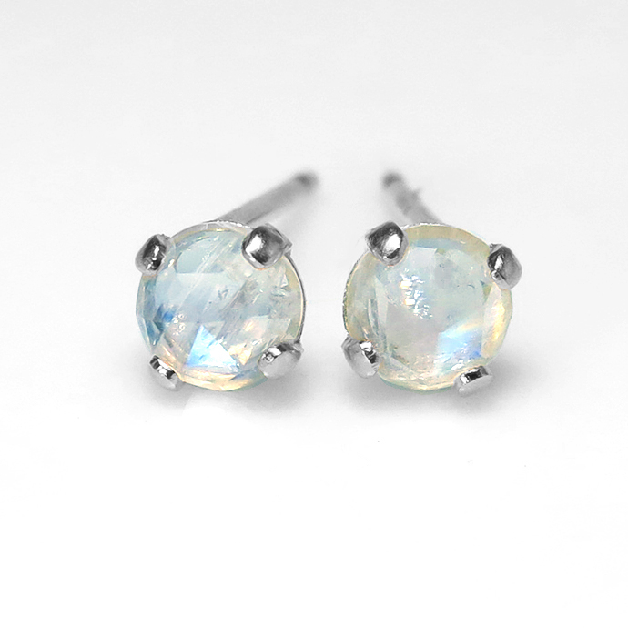 レインボームーンストーンピアス シルバー 天然石 <6月誕生石> ラウンド5mm カボションローズカットSV925 1ペアです。