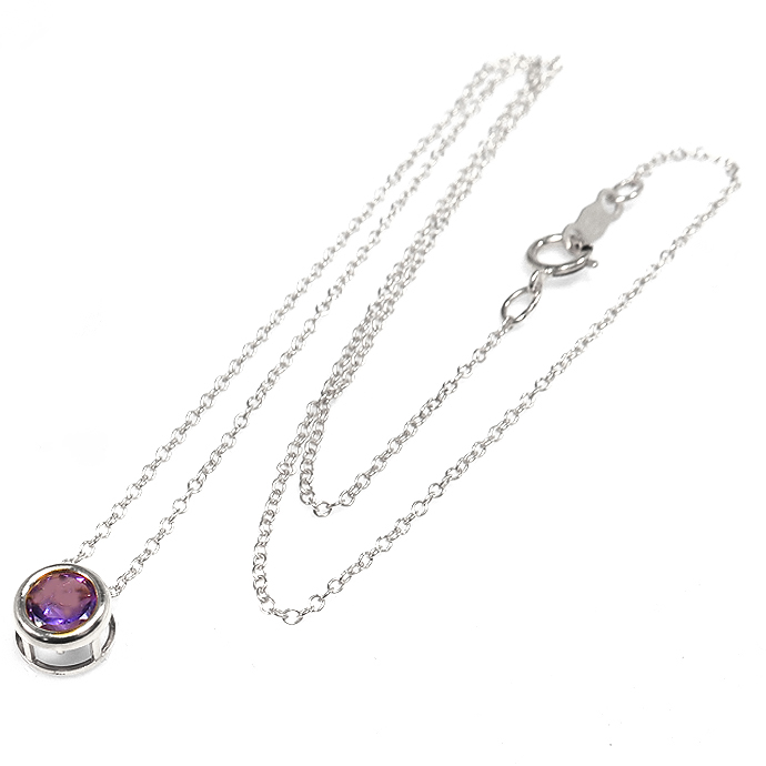 シルバーネックレス アズキ・幅:1.15mm 引き輪・丸カン:シルバー925 ペンダントトップ金具:シルバー925 天然石アメジスト(アフリカ):6mm