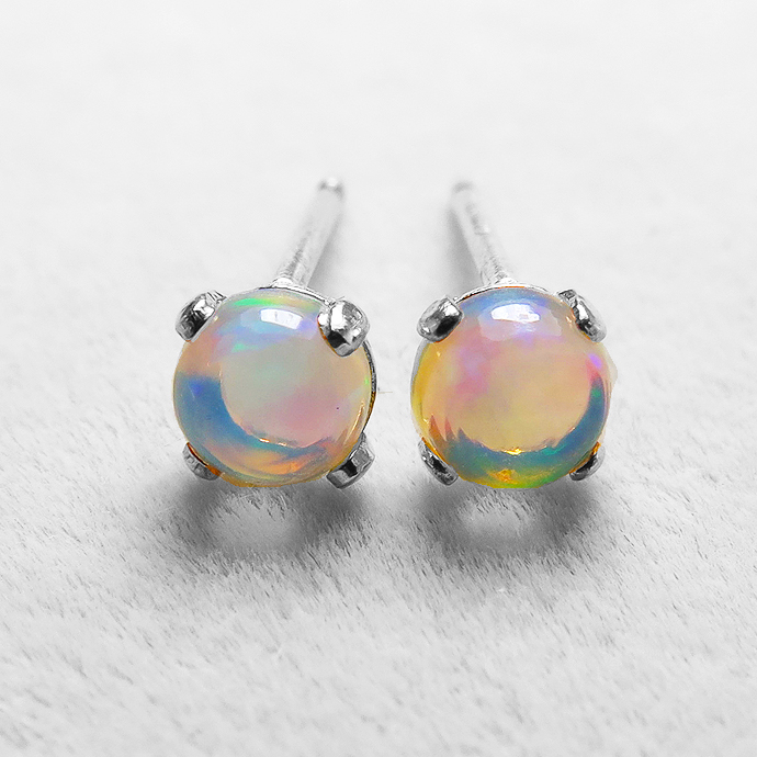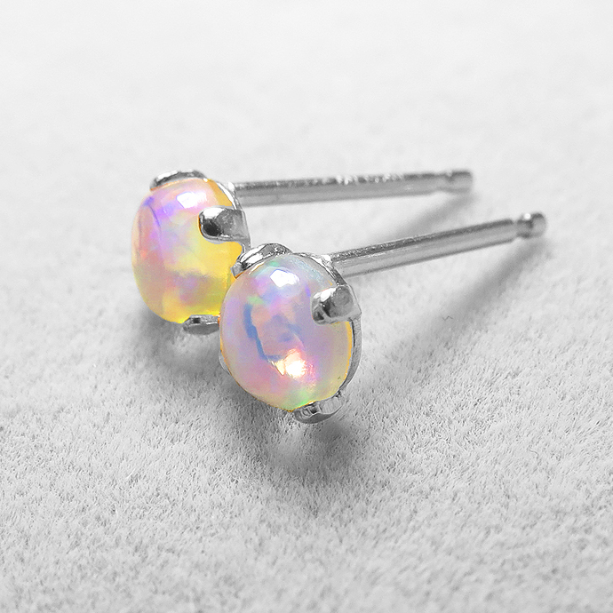 エチオピアンオパールピアス 天然石<10月誕生石> 4mm シルバー SV925(1ペア)です。