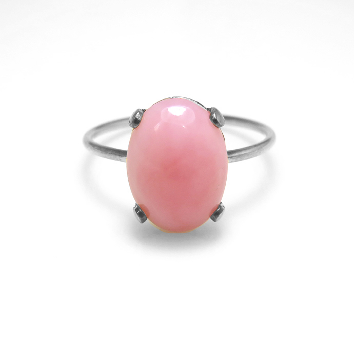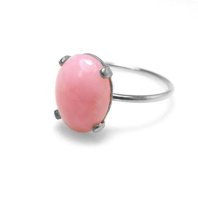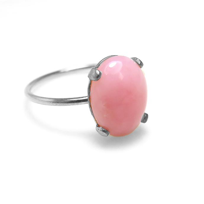 ピンクオパール 指輪 天然石リング 10×8mm(4本爪カボション・オーバル)シルバーSV925(1個)です。