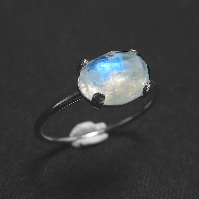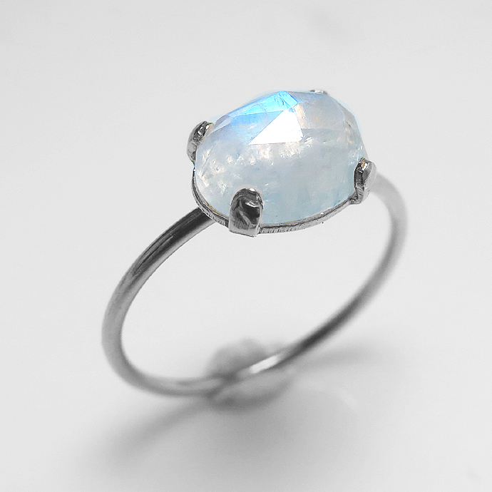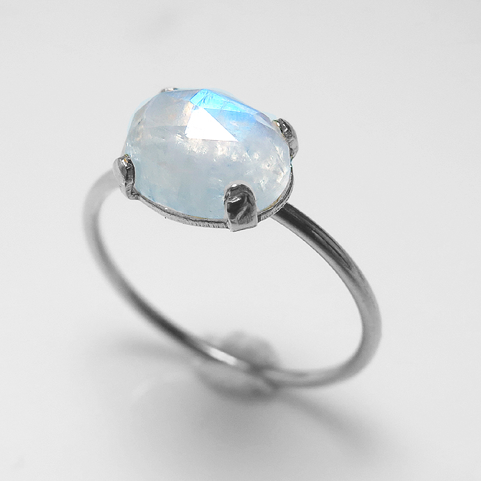 レインボームーンストーン 指輪 リング 天然石 シルバー<6月誕生石>8×6mmカボション/ローズカット SV925 1個です。