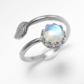 レインボームーンストーン<6月誕生石>天然石指輪リング・リーフ(ベゼルカボションラウンド・6mm)(真鍮ブラス・シルバーカラー)です。