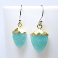 アマゾナイトピアス 天然石17×10mmシャークトゥース ペアシェイプ・フレンチフックピアス シルバー ゴールド コンビ ミックスです。