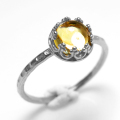 シトリン 指輪 リング 天然石<11月誕生石>ハンマード ラウンド6mm 真鍮ブラス・シルバーカラー/1個 です。
