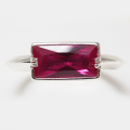 ルビー 指輪 合成石 リング(バゲット10×5mm)(真鍮ブラス・シルバーカラー)です。