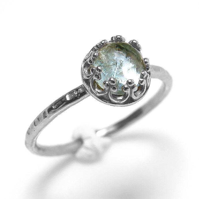 アクアマリンリング 指輪 <3月誕生石> 天然石 ハンマード ラウンド6mm 真鍮ブラス・シルバーカラー/1個です。