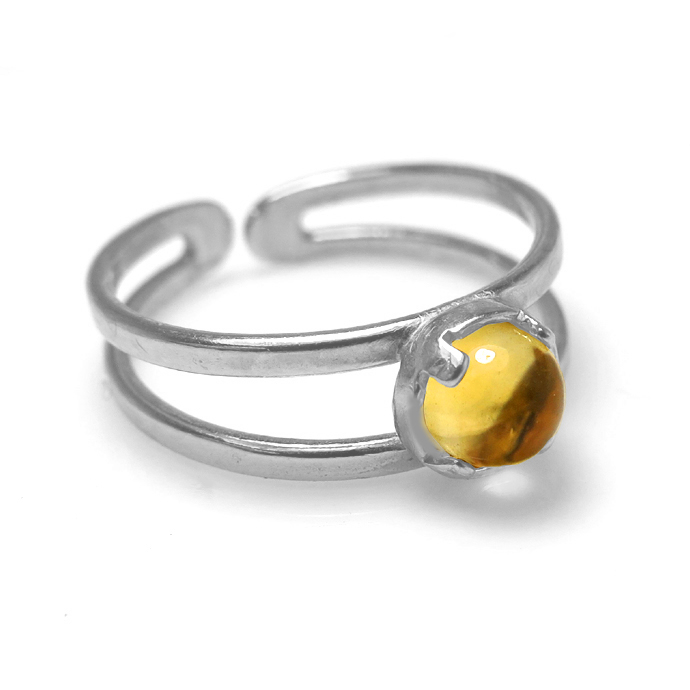 シトリン指輪 リング 天然石<11月誕生石>・指輪リング(カボションラウンド・5mm)(真鍮ブラス・シルバーカラー)(1個)