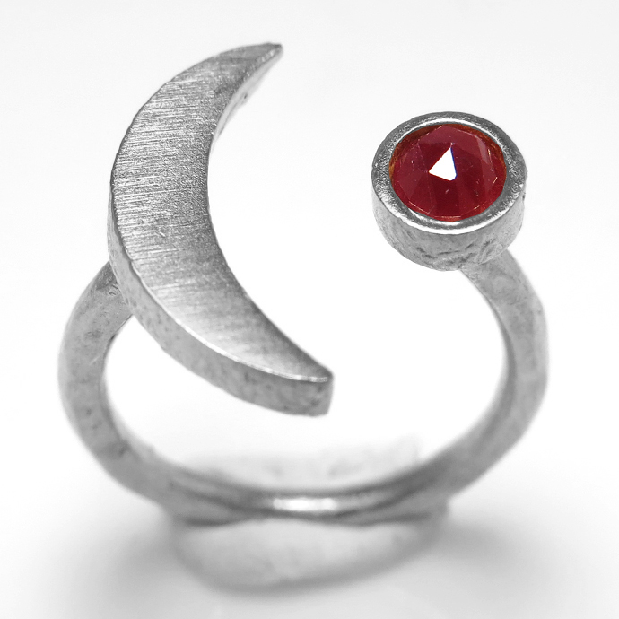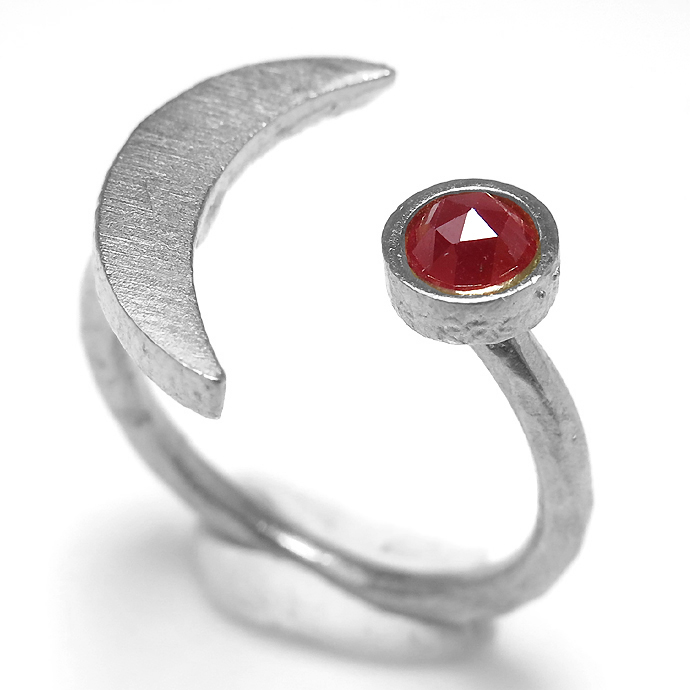 ルビー 三日月 ムーン リング 惑星 指輪 天然石ルビー ローズカット 4mm 真鍮ブラス・銀古美シルバーカラー(1個)