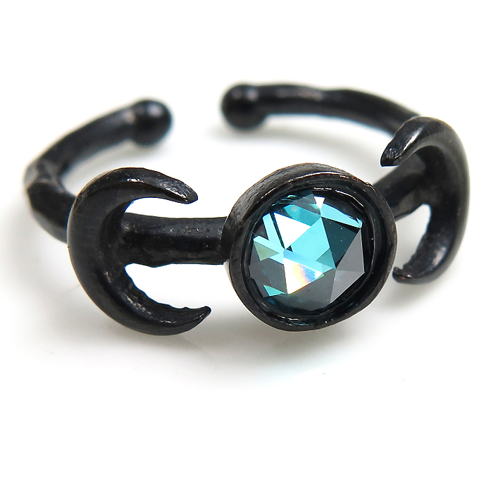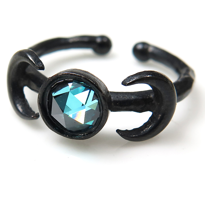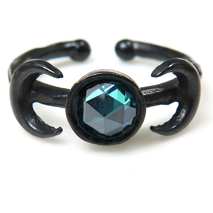 月 惑星 ムーン リング ブラックリング 指輪 CZブルー 6mm 真鍮ブラス(1個)