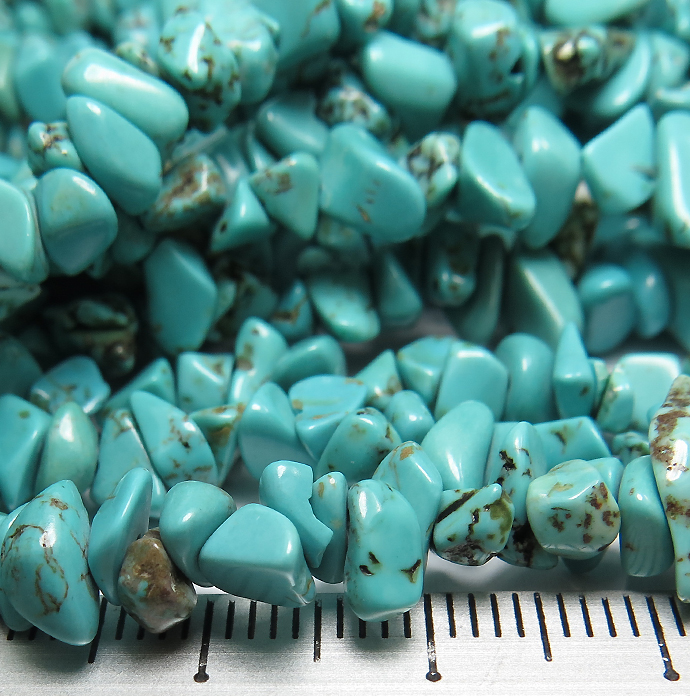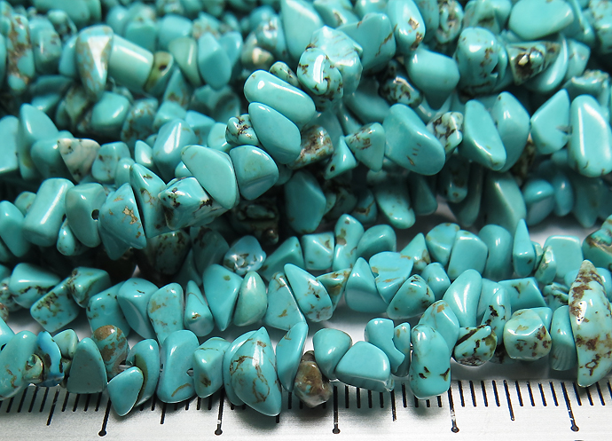 ターコイズ ビーズ さざれ チップ 連 天然石 染め(83cm)(50本)
