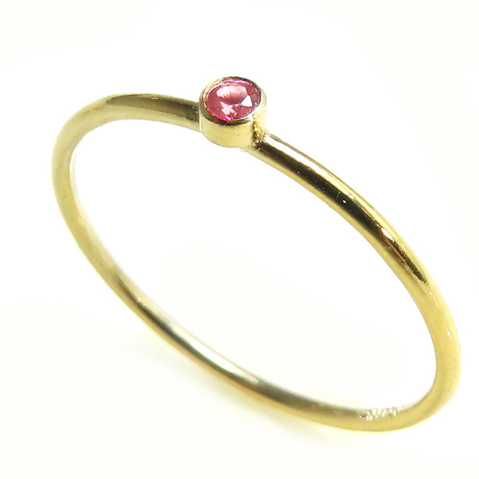 ピンクトルマリンリング 指輪 ベゼル ラウンド 天然石 2mm ゴールド 14KGF(1個)
