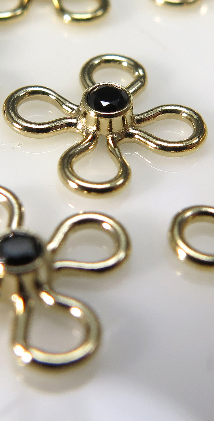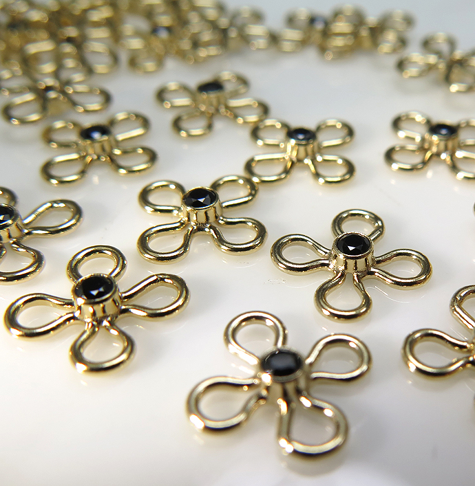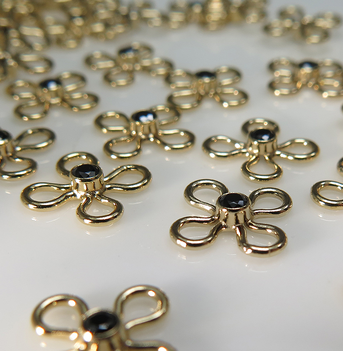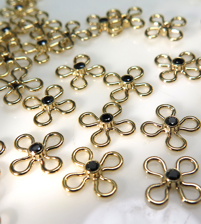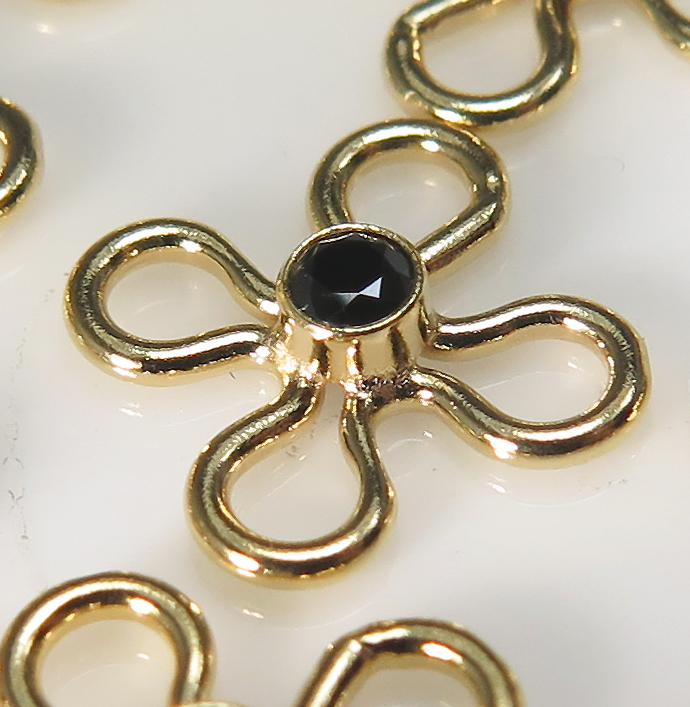 14kgf コネクター フラワー 7.5mm/2mm ブラック CZキュービックジルコニア 「ゴールドフィルド」 (50個)
