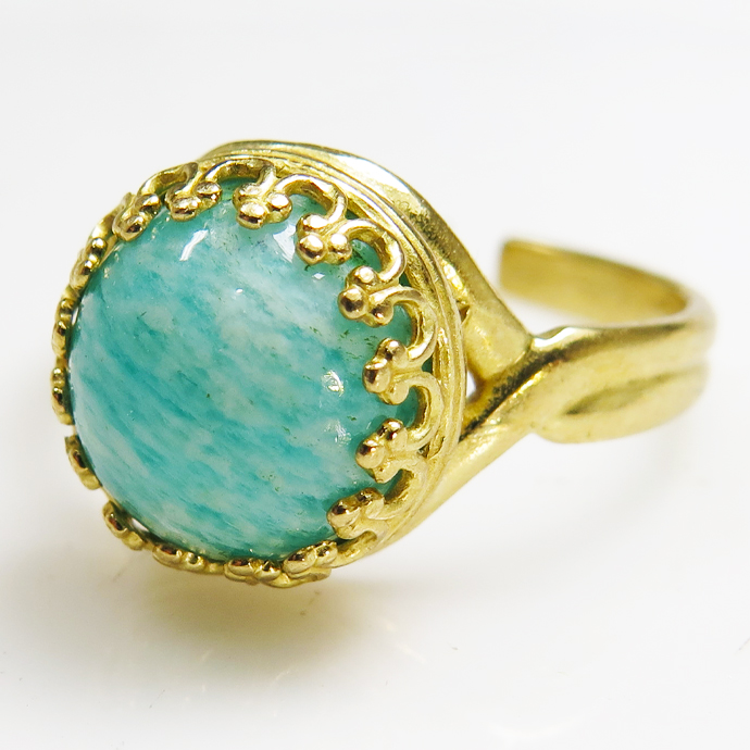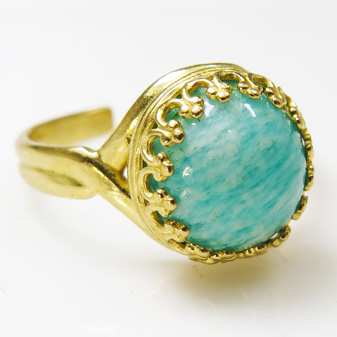 アマゾナイト リング 指輪 天然石 カボション 10mm ラウンド真鍮ゴールドカラー 1個