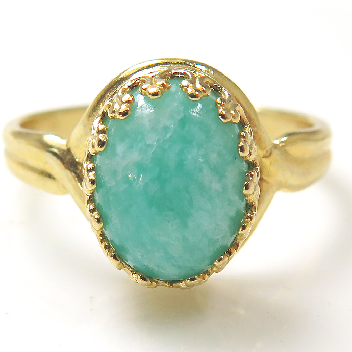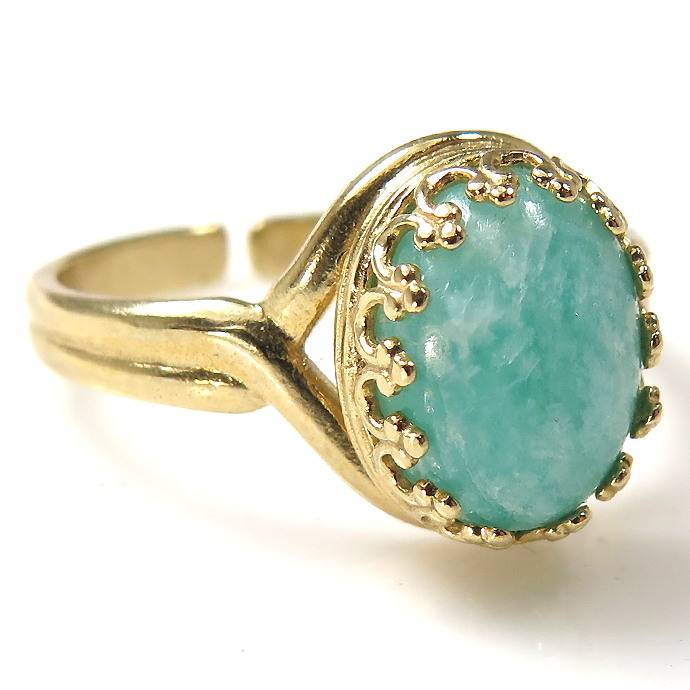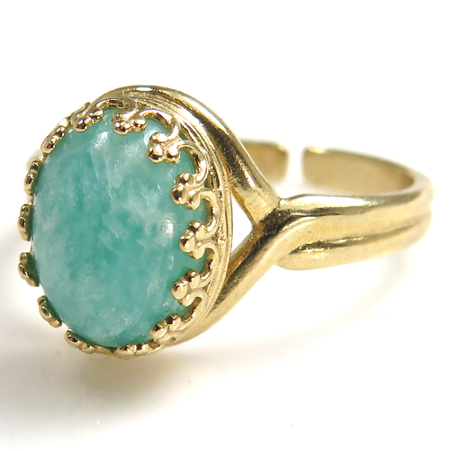 アマゾナイト リング 指輪 天然石 カボション 10×8mm オーバル 真鍮ゴールドカラー 1個