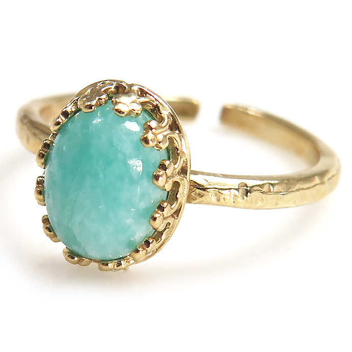 アマゾナイトリング指輪 天然石 カボション 8×6mm オーバル 真鍮ゴールドカラー 1個