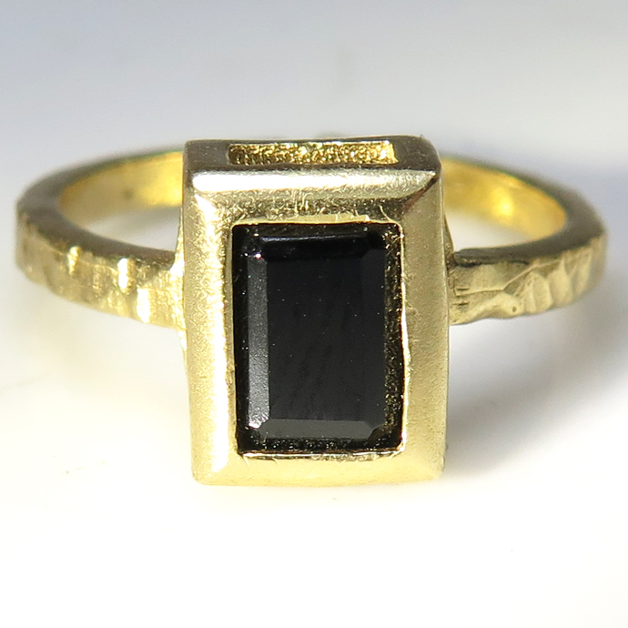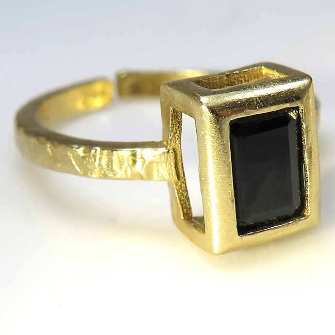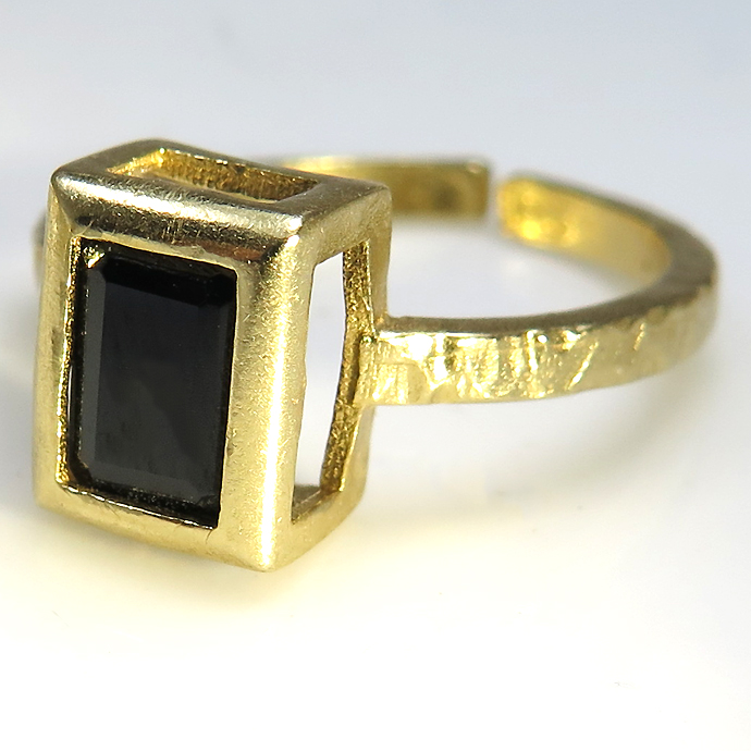 ブラックオニキス 指輪 レクタングル オクタゴン 長方形リング 天然石 7×5mm 真鍮ブラス・ゴールドカラー 1個