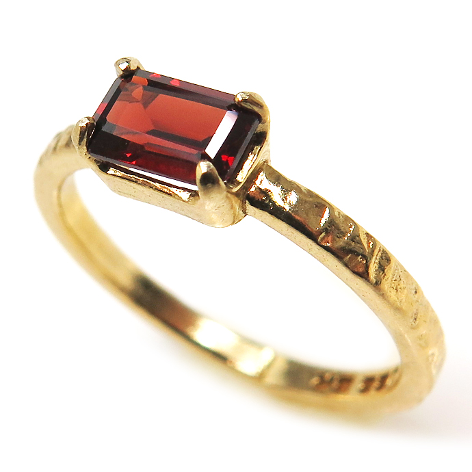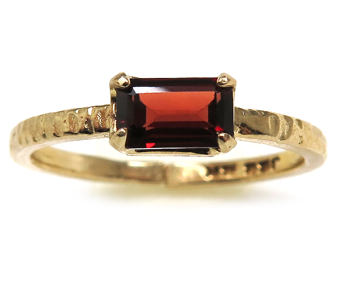 ガーネット 天然石 リングハンマード 指輪 オクタゴン レクタングル(6×4mm)(真鍮ブラス・ゴールドカラー)