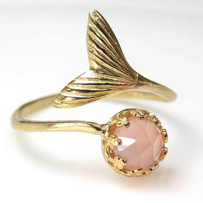 ピンクカルセドニー 天然石 人魚 指輪 マーメイド マーメード テール リング ゴールド 6mm 真鍮ブラス 1個
