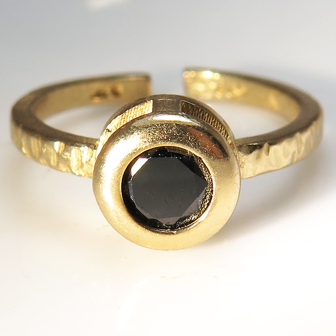 ブラックオニキスリング 指輪 天然石 ラウンド 6mm 真鍮ブラス・ゴールドカラー 1個