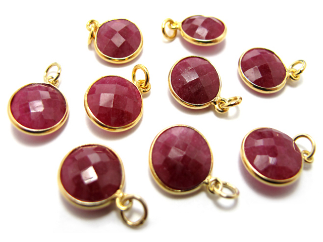 ゴールドプレーテッド・SV925/ペンダントトップ/天然石ルビー<7月誕生石>(染)/ラウンド 11mm(ベゼルセッティング)(1個)