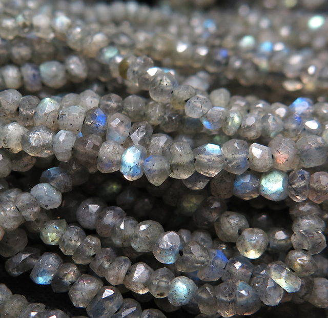 天然石ビーズ ラブラドライト/ラウンデル・ボタンカット3~4mm(約32センチ)(25連)