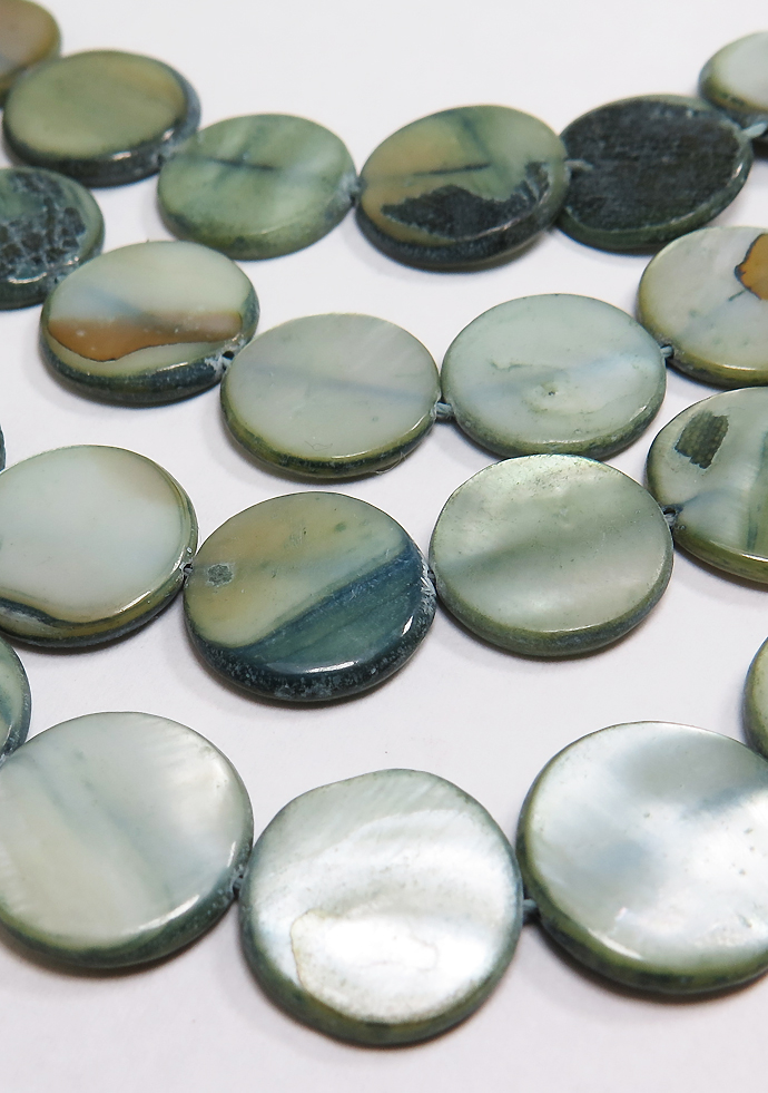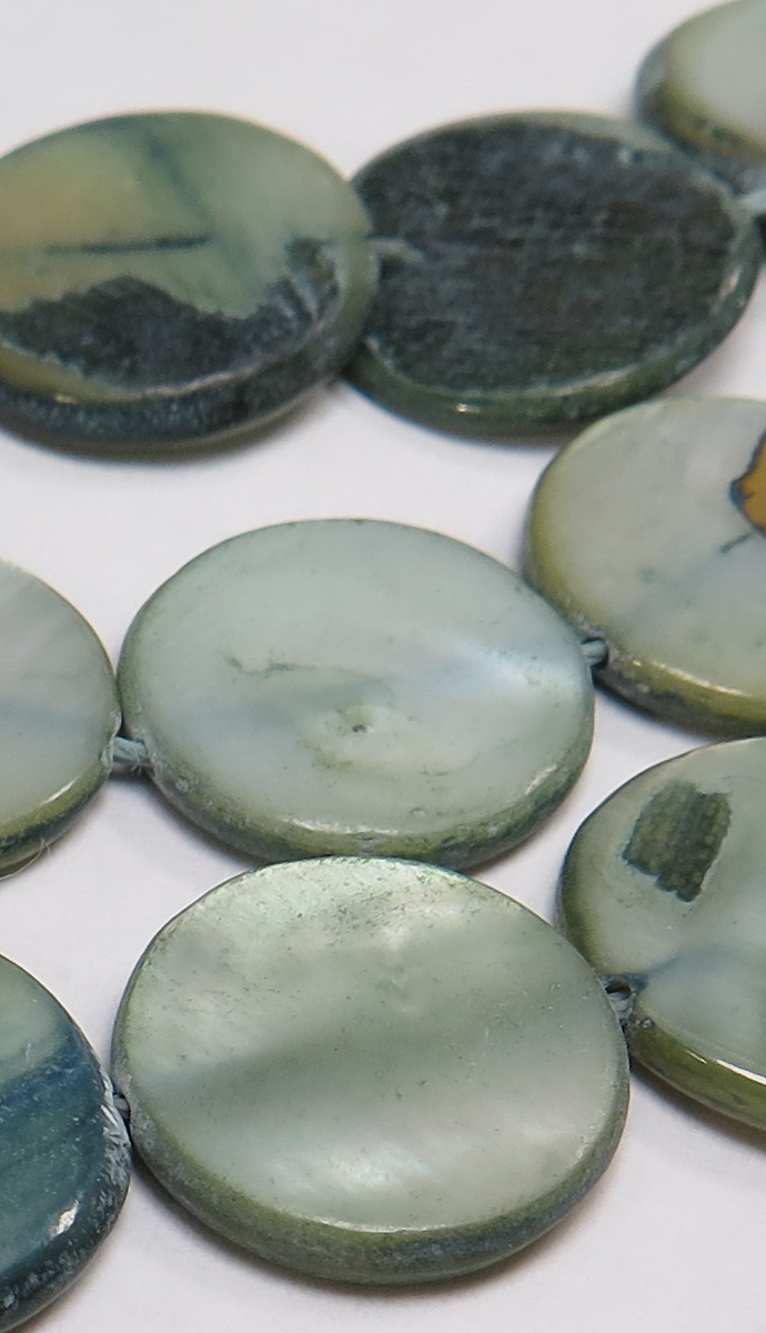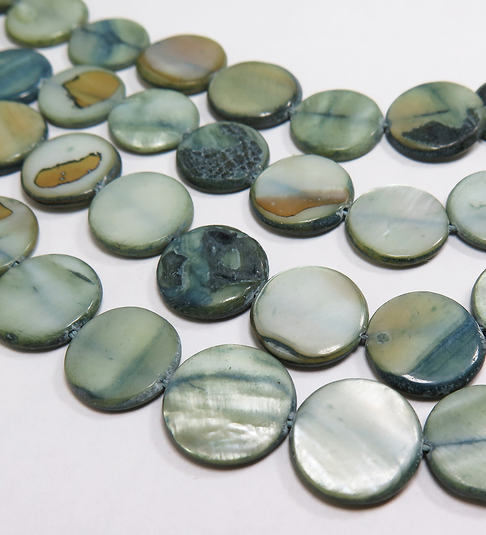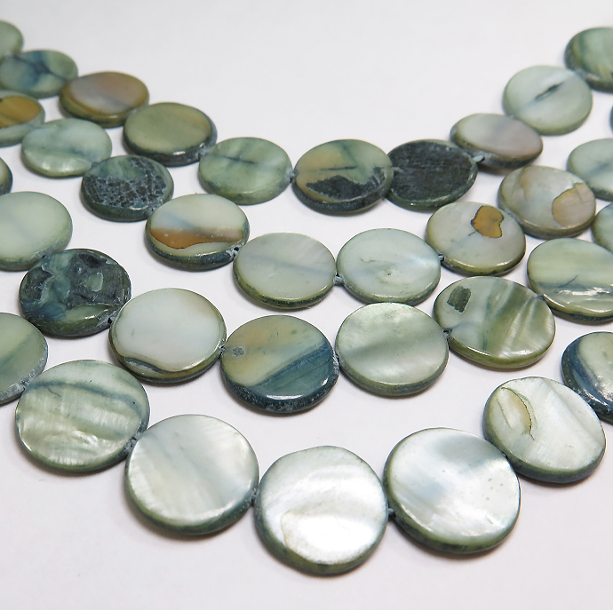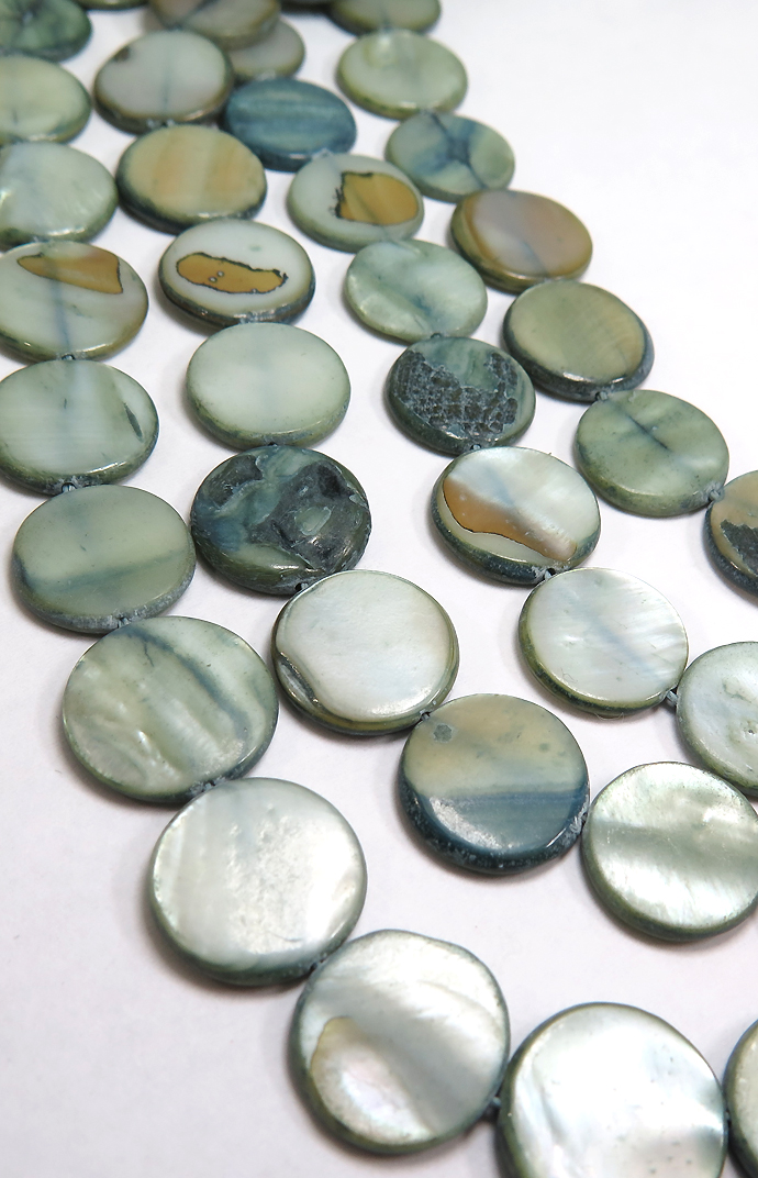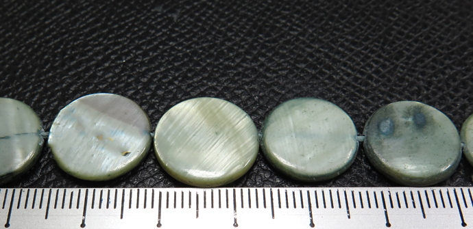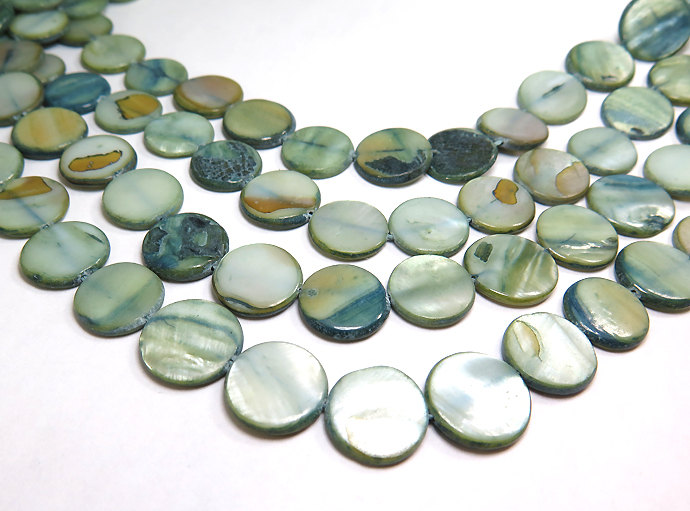 シェルビーズ ラウンド フラット 平 丸(染・ブルーグリーン系)(14mm前後)1本