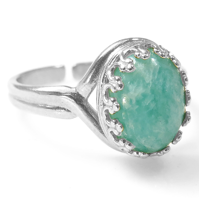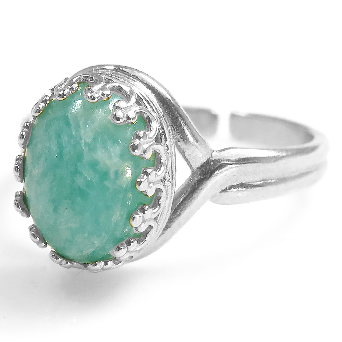 アマゾナイト リング 指輪 天然石 カボション 10×8mm オーバル 真鍮シルバーカラー 1個