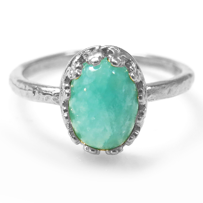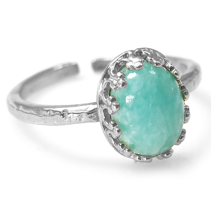 アマゾナイトリング指輪 天然石 カボション 8×6mm オーバル 真鍮シルバーカラー 1個