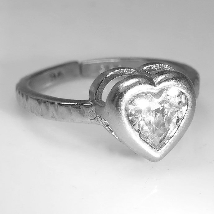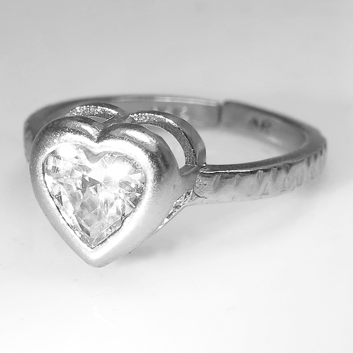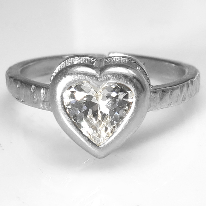 キュービックジルコニア CZリング 指輪 ハート ベゼル 6mm(真鍮ブラス・シルバーカラー)1個