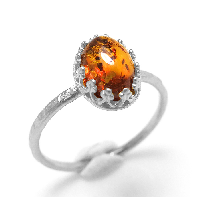 琥珀 指輪 アンバー リング(カボションオーバル8×6mm)(真鍮ブラス・シルバーカラー)(1個)