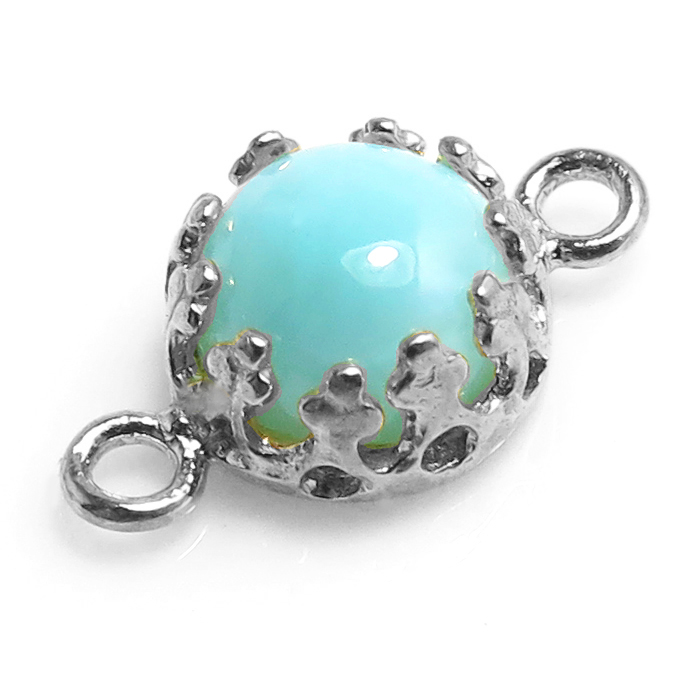 天然石コネクター ラリマー(ベゼルセッティング/カボション)ラウンド6mm(真鍮ブラス・シルバーカラー)1個