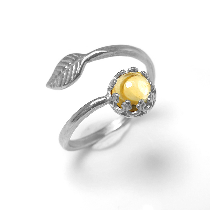 シトリン リング 指輪<11月誕生石>リーフ(ベゼルカボションラウンド・6mm)(真鍮ブラス・シルバーカラー)(1個)