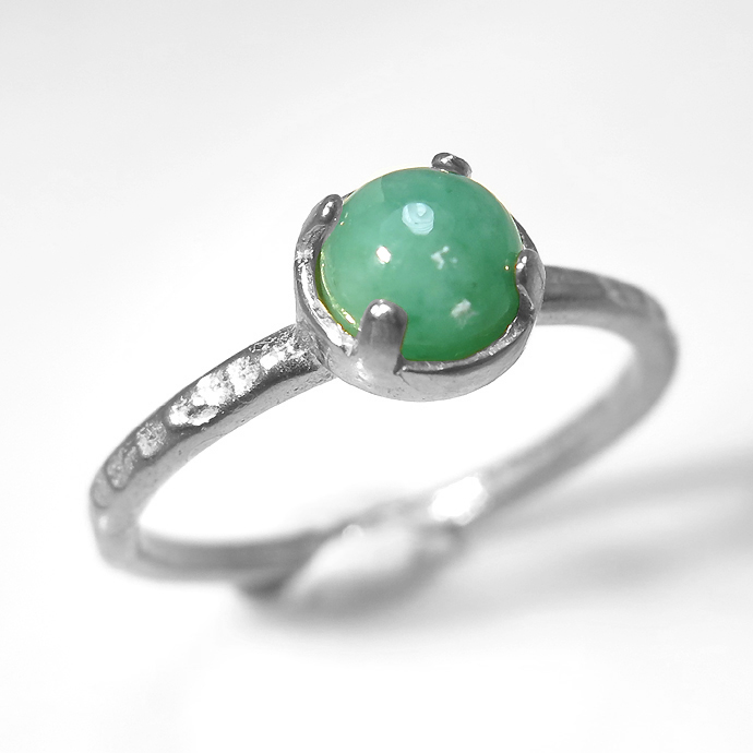 エメラルド 指輪 リング ミルキーグリーン ハンマード(4本爪 カボション ラウンド 5mm)(真鍮ブラス・シルバーカラー)