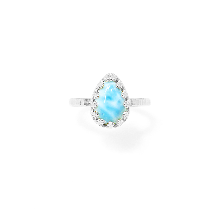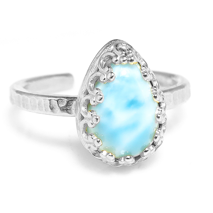 ラリマー 指輪 リング 天然石(カボション ペアシェイプ・10×7mm)(真鍮ブラス・シルバーカラー)