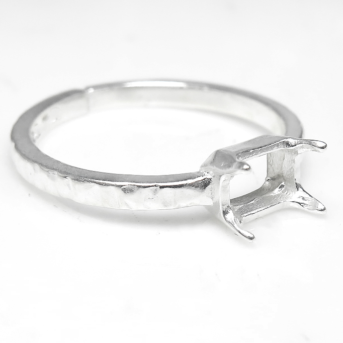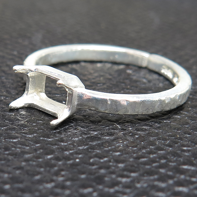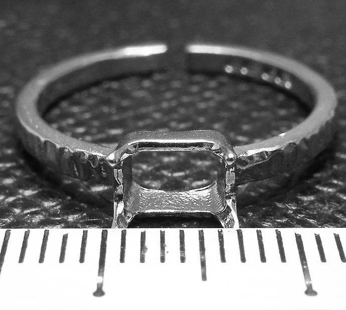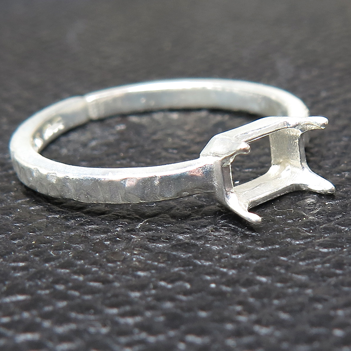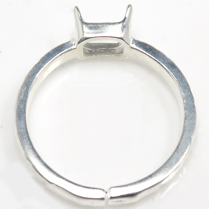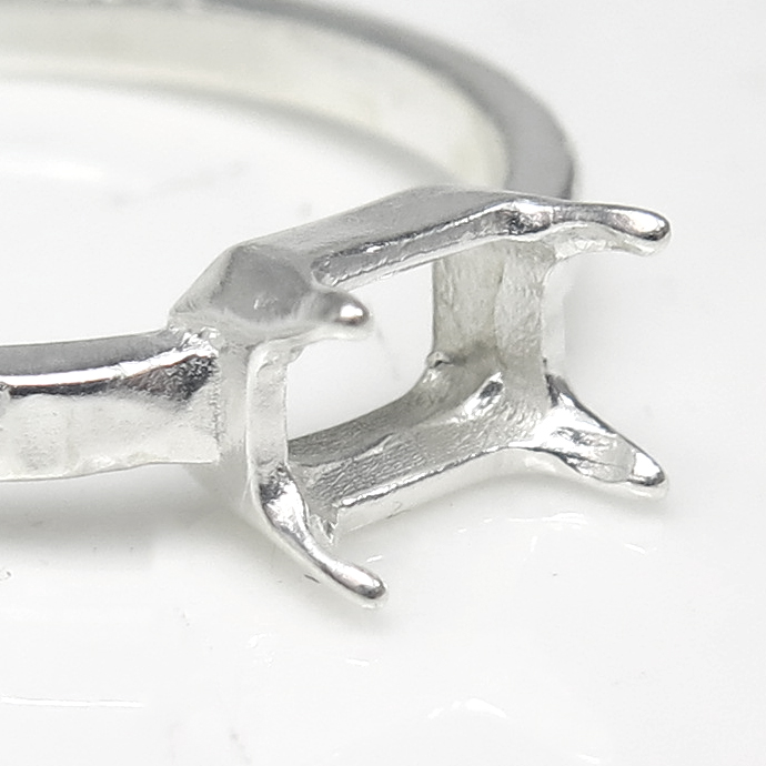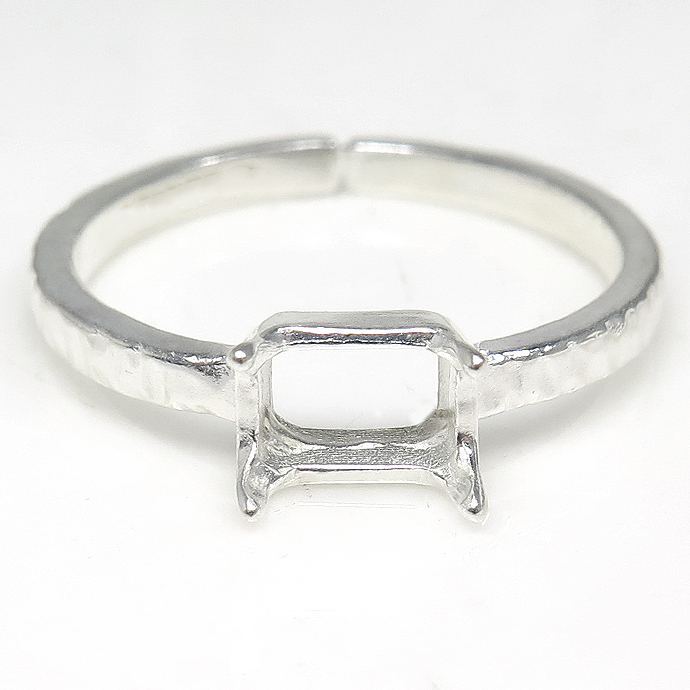 レクタングル 指輪 空枠 リング オクタゴン 長方形 ハンマード シルバー 4本爪 ブラス 横-6×4mm(真鍮 シルバーカラー) 3個