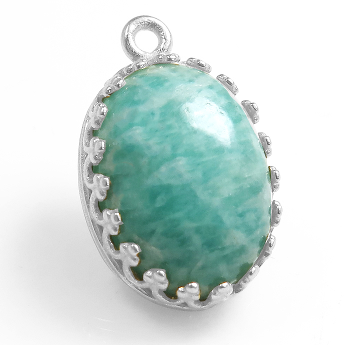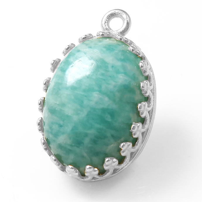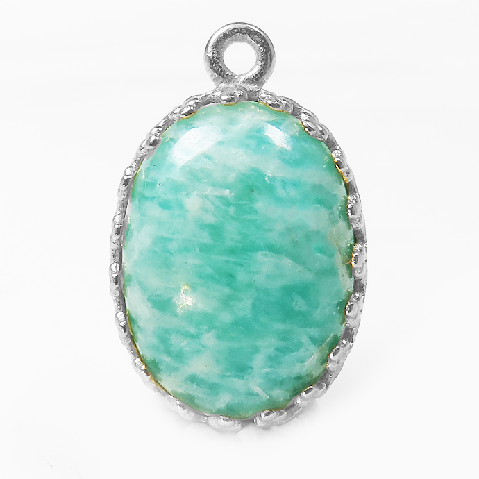 アマゾナイト チャーム ペンダントトップ 天然石 カボション オーバル 14×10mm 真鍮シルバーカラー(1個)