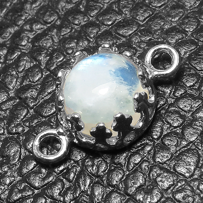 天然石コネクター レインボームーンストーン(ベゼルセッティング/カボション)ラウンド6mm(真鍮ブラス・シルバーカラー)1個