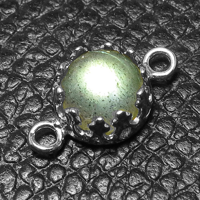天然石コネクター ラブラドライト(ベゼルセッティング/カボション)ラウンド6mm(真鍮ブラス・シルバーカラー)1個