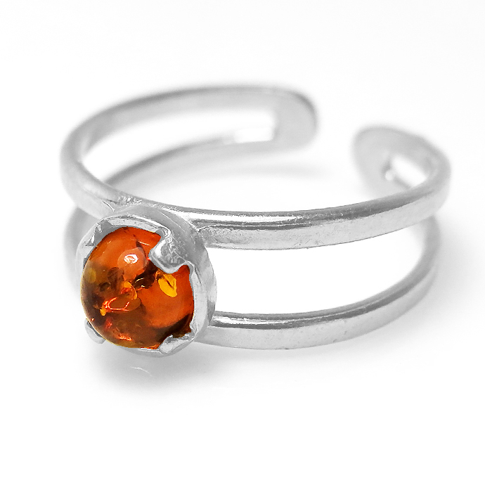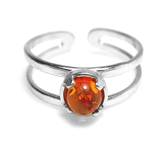 琥珀 指輪 リング バルト海沿岸部 指輪リング・カボション(ラウンド・5mm)真鍮ブラス・シルバーカラー(1個)