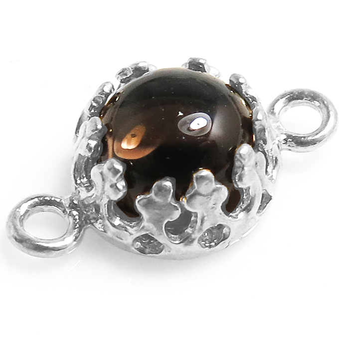 天然石コネクター スモーキークオーツ(ベゼルセッティング/カボション)ラウンド6mm(真鍮ブラス・シルバーカラー)1個