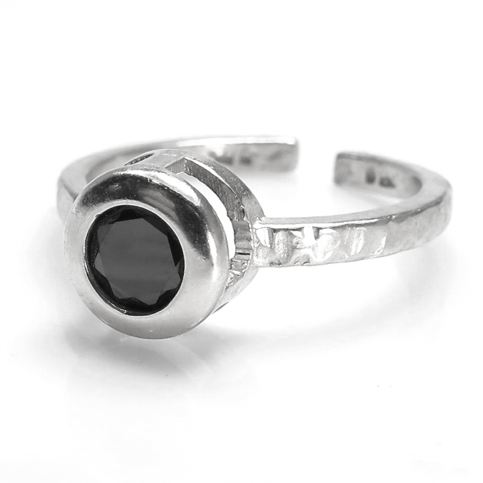 ブラックオニキス リング 指輪 天然石 ラウンド 6mm 真鍮ブラス・シルバーカラー 1個
