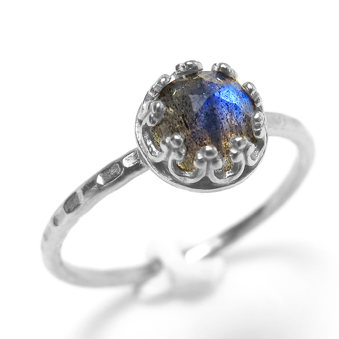 ラブラドライト 指輪 リング ローズカット 天然石 ハンマード ラウンド6mm 真鍮ブラス・シルバーカラー/1個