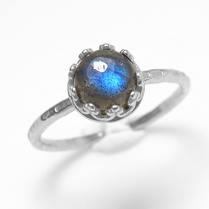 ラブラドライト 指輪 リング 天然石 ハンマード ラウンド6mm 真鍮ブラス・シルバーカラー/1個