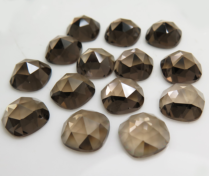スモーキークオーツ ルース 天然石 スクエア クッション ローズカット カボション【10mm】50個