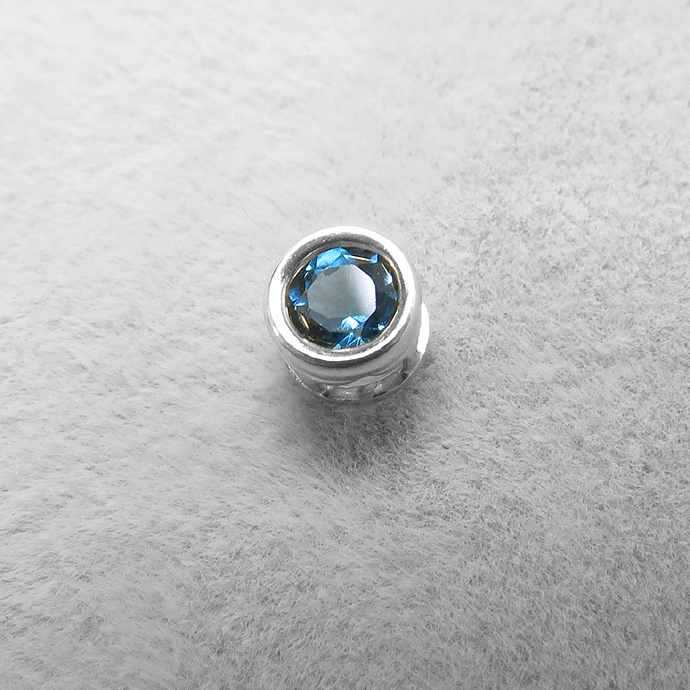 ロンドンブルートパーズ シルバーチャーム ペンダント 天然石 <11月誕生石>ラウンド3mm ベゼル「SV925」(1個)