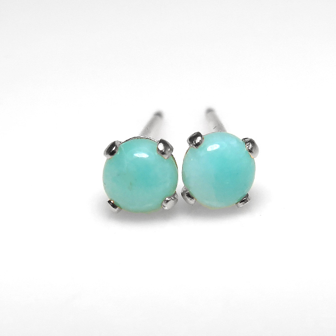 アマゾナイトピアス 天然石 カボション ラウンド 4mm シルバー SV925(1ペア)