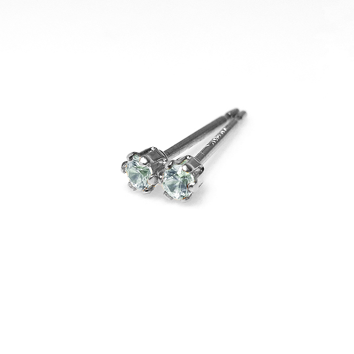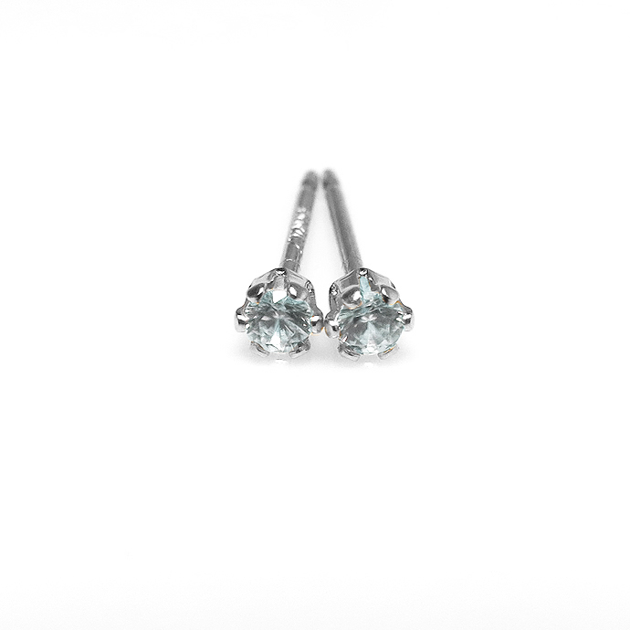 アクアマリン ピアス 天然石 シルバーSV925(2mmラウンド6本爪)<3月誕生石>(1ペア)